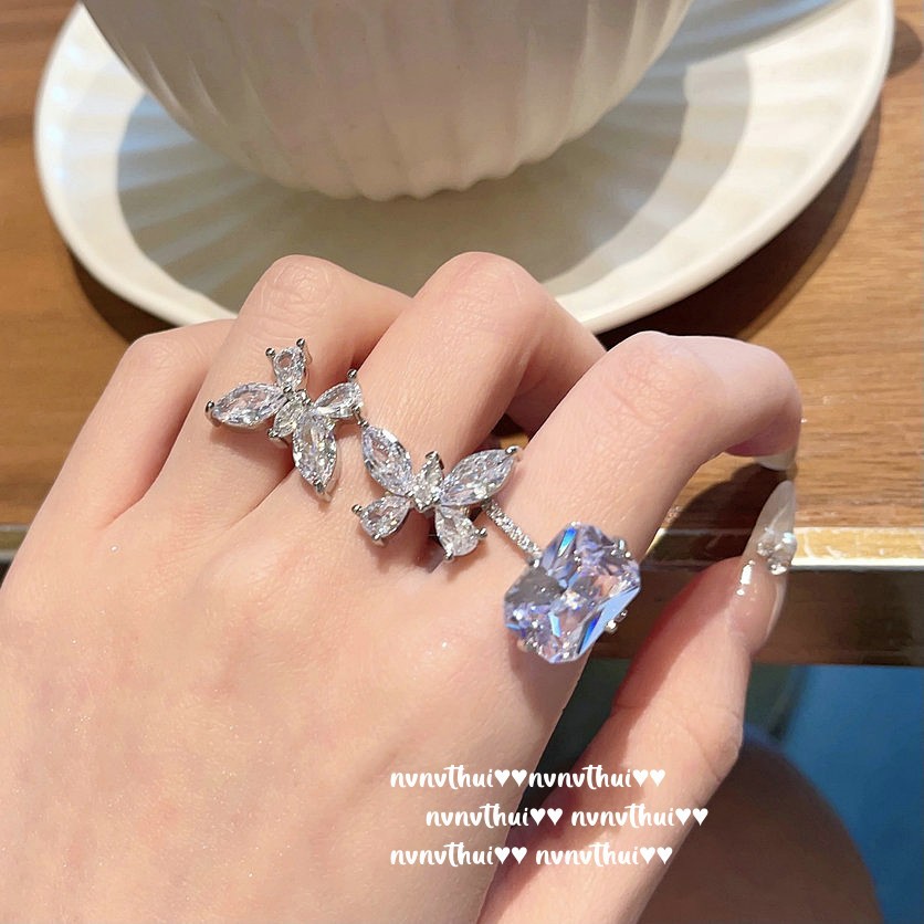 Bright Water Drops Butterfly Gem Ring Designer Plated 18K Gold Double Butterfly Zircon Fireworks Cut Ring Adjustable