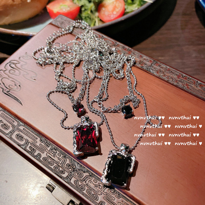 Oil Painting Pomegranate Ruby Melted Geometric Necklace Designer Plated 18K Gold Pointed Zircon Double Layer Flash Diamond Neck Chain