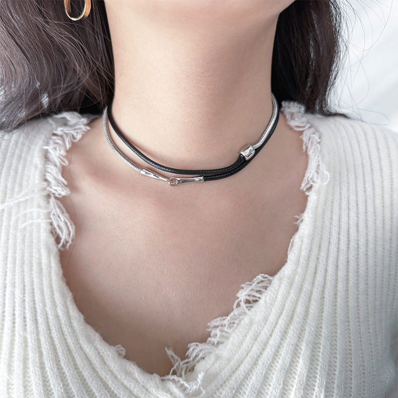 European and American style fashion simple cowhide rope stitching snake bone chain designer necklace niche high-end feeling neck chain female ins