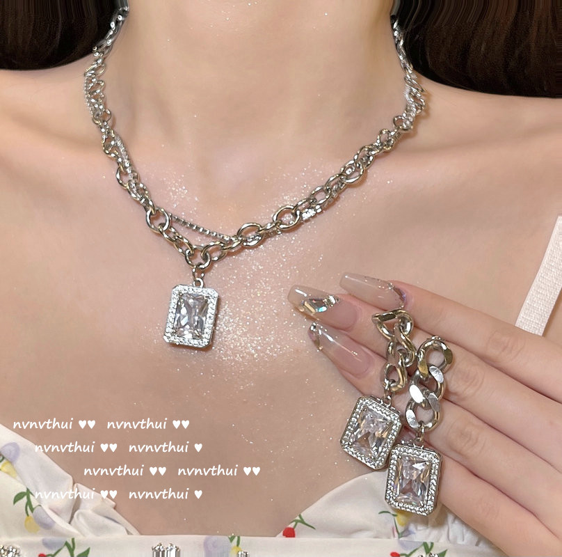 Sparkling geometric gem thick chain necklace designer plated 18K gold eight hearts and eight arrows rock sugar zircon earrings