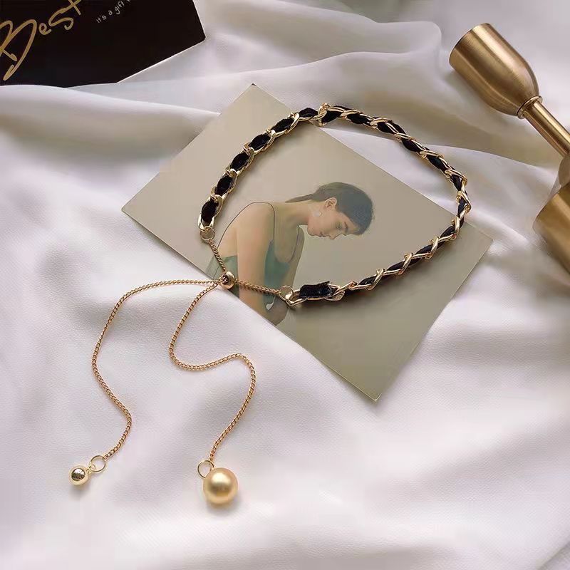 European and American Cuban Chain Leather Neck Chain Pull-out Popular Internet Popular Fashion Necklace Female Niche Designer Woolen Chain