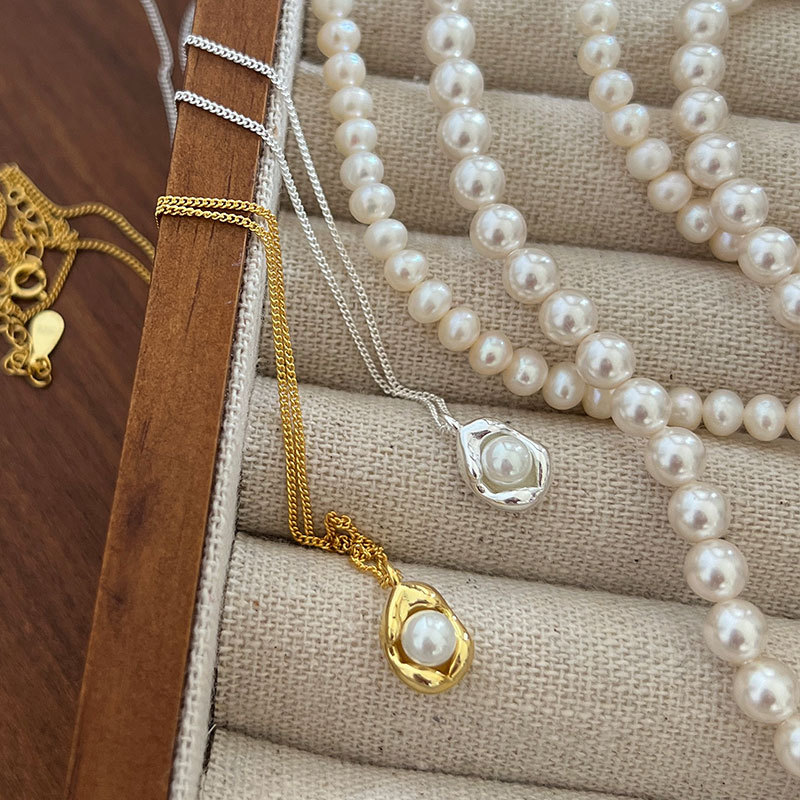 925 Sterling Silver Irregular Shell Pearl Necklace Women's Little Red Book Same Style French Romantic Designer N1041T
