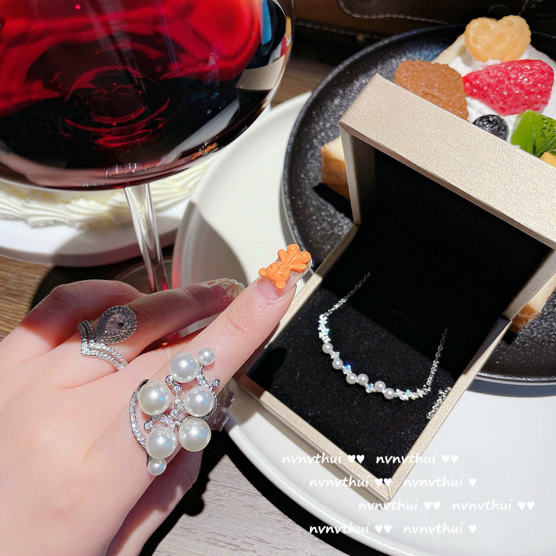 Yingying Zongzhu Wheat Ear Gem Pearl Ring Designer Plated 18K Gold Drop Zircon Crown Ring Necklace