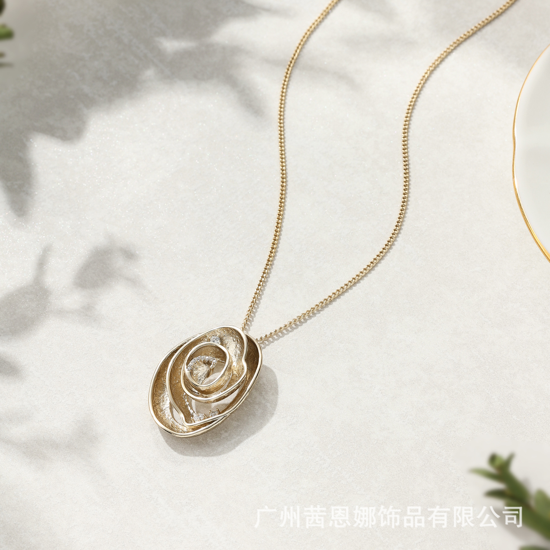 French Designer Retro Zircon Geometric Oval Electroplated Nostalgic Gold Necklace Unique Niche Design Necklace Pendant