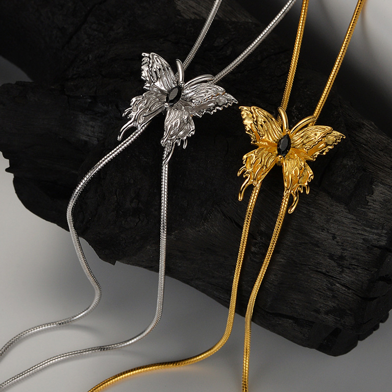 X2148 Korean style light luxury designer S925 sterling silver butterfly necklace women's pull-out long sweater chain