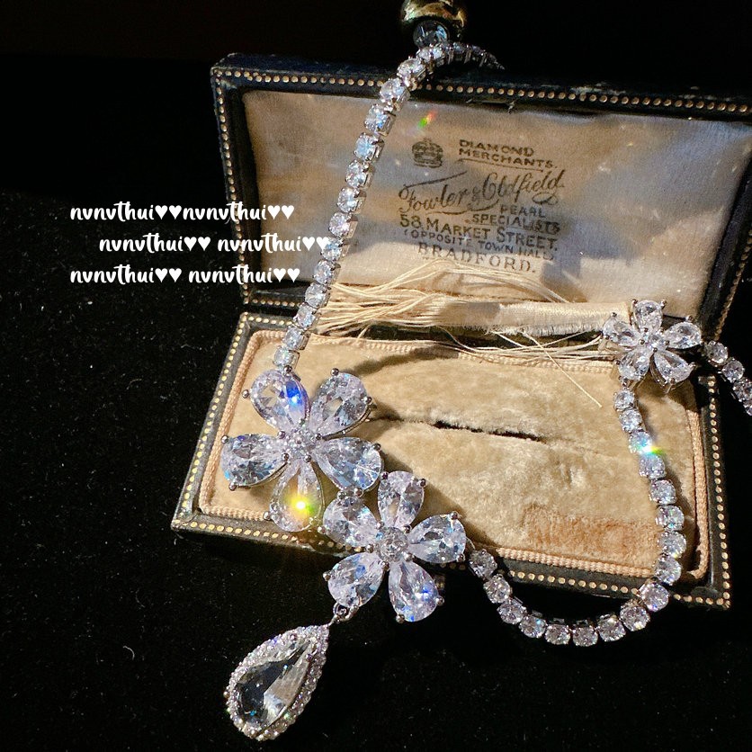 Brilliant Light Flower Gem Necklace Designer Plated 18K Gold Ice Flower Cutter Water Drop Zircon Earrings Set