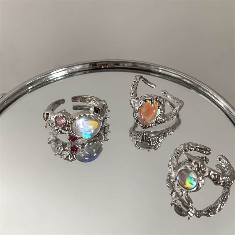 Moonstone pink diamond zircon ring 2022 new fashion ins female high-end luxury niche designer summer