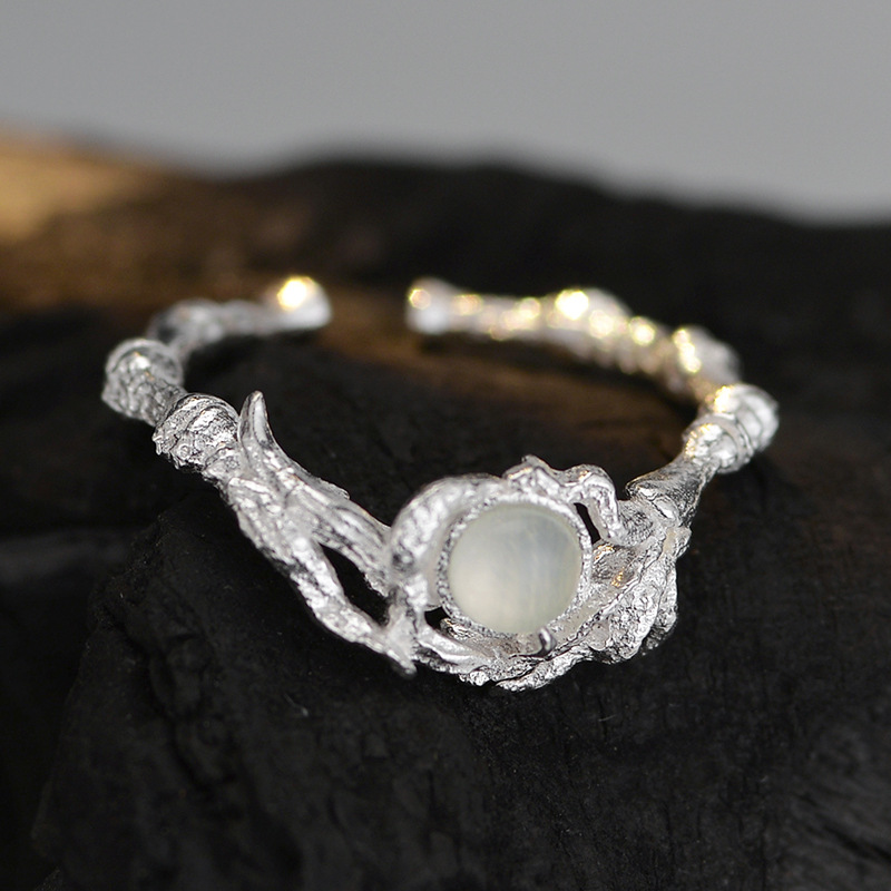 J1415 New Chinese Niche Designer S925 Sterling Silver Pattern Ring Women's Open ins Style Alien Finger Ring