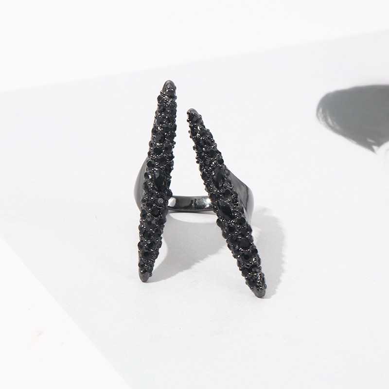 European and American Ghost Designer Fashion New Ring Punk Street Simple Black Diamond Hollow Opening Ring
