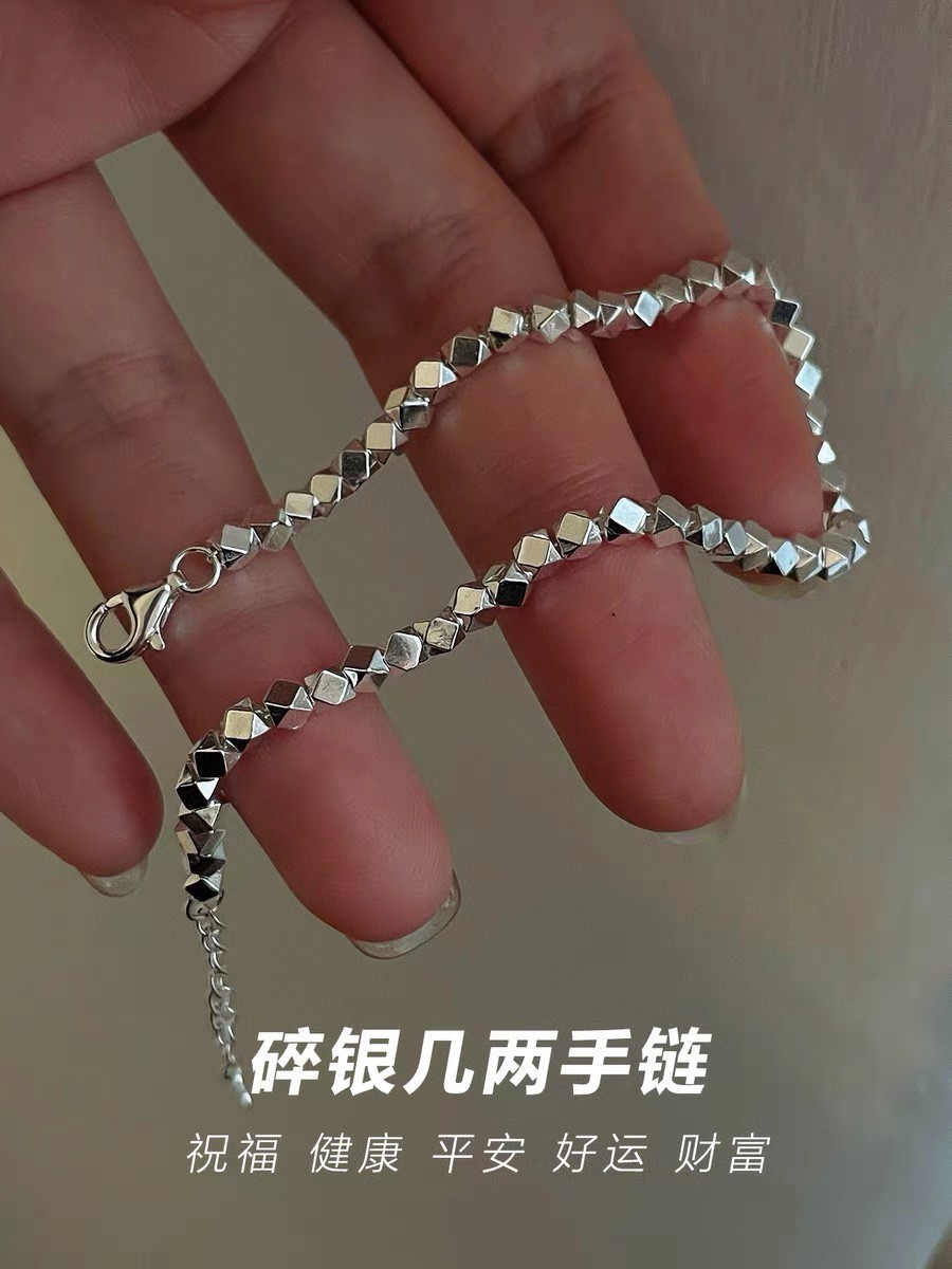 Bracelet Sterling Silver Broken Silver Women's 990 Sterling Silver Niche Design Silver Simple Fashion Elegant Diamond Korean Cold Style