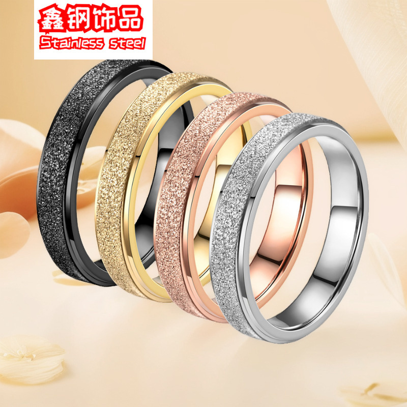 European and American Stainless Steel Pearl Sand Ring Color-free Simple Couple Ring Women's Design Sense Niche Ring Jewelry
