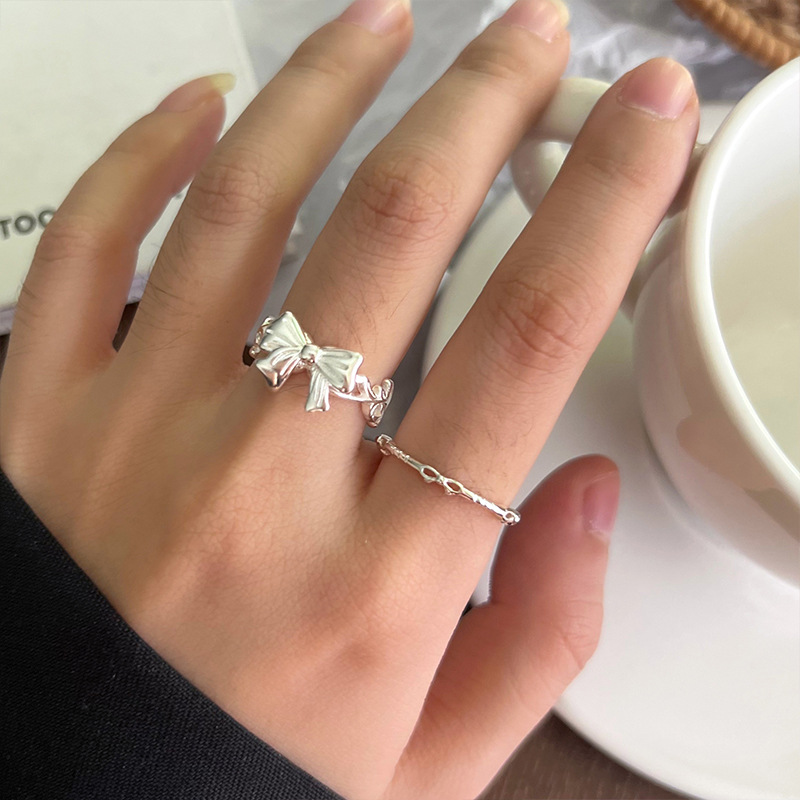 Lanzhi Su Circle 925 Silver Ring Bow Korean Jewelry Niche Design Ins Simple Open End Ring