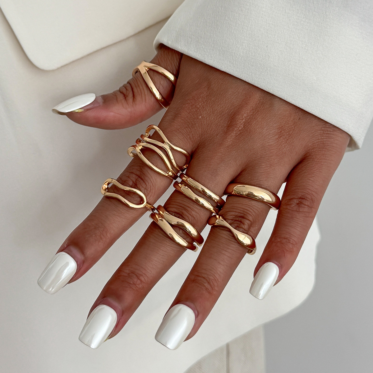 Ins Japanese and Korean Simple Wavy Ring Personalized Ring Niche Design Elegant Popular Tail Ring Finger Set for Women