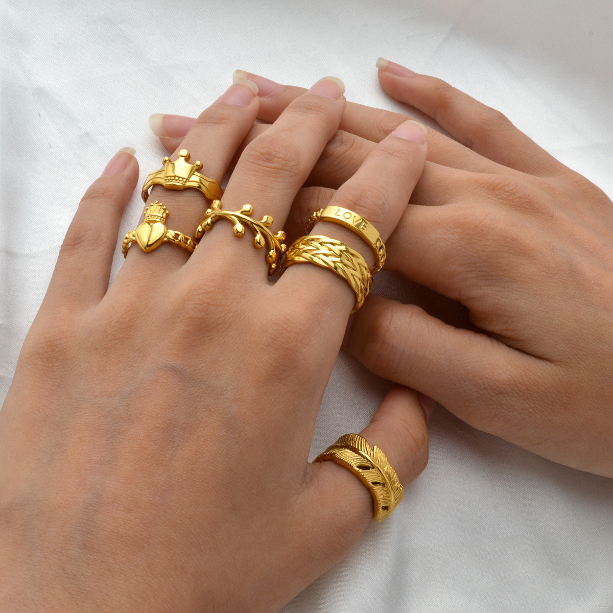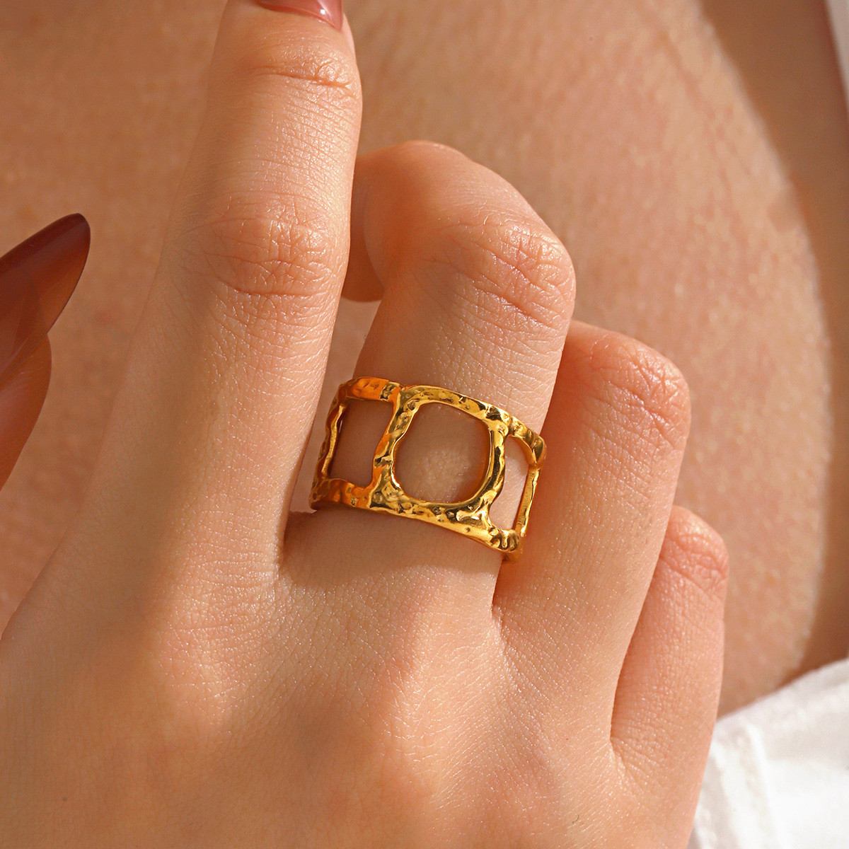 Europe and the United States cross-border fashion cool INS design stainless steel ring 18k gold simple high-end French ring jewelry