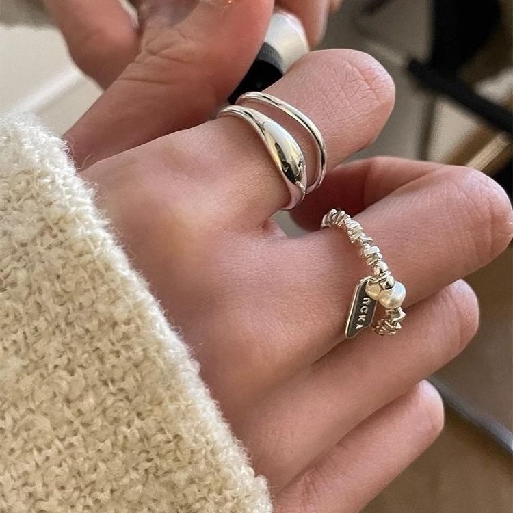 Niche design drop oil metal Pearl open ring female retro personality simple all-match temperament ring ring