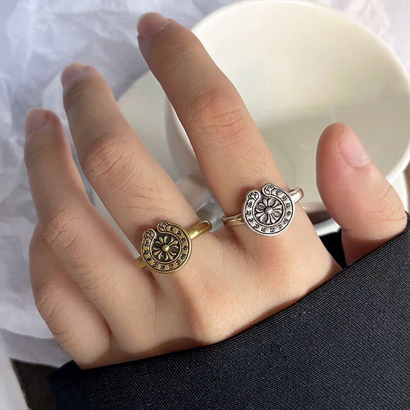 Lanzhi Non-Fading Ancient Gold Ring Women's Niche 925 Silver Ring Personalized Punk Design Jewelry Open Ring