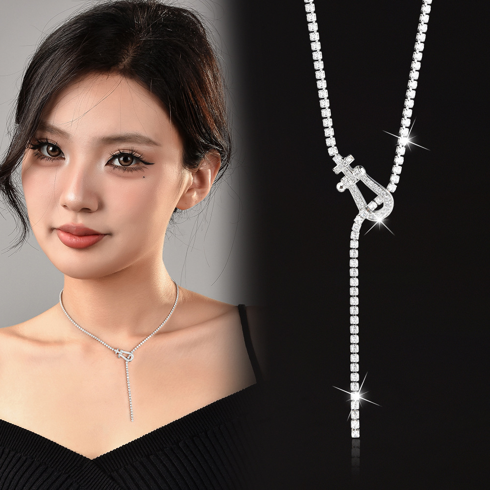 silver Zircon Horseshoe Necklace European and American Light Luxury Cold Style Design Sense Clavicle Chain Distinctive Spring New Necklace for Women