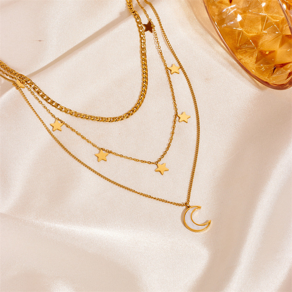 European and American fashion niche moon star three-layer design feeling neck chain titanium steel three-layer star moon does not fade necklace women