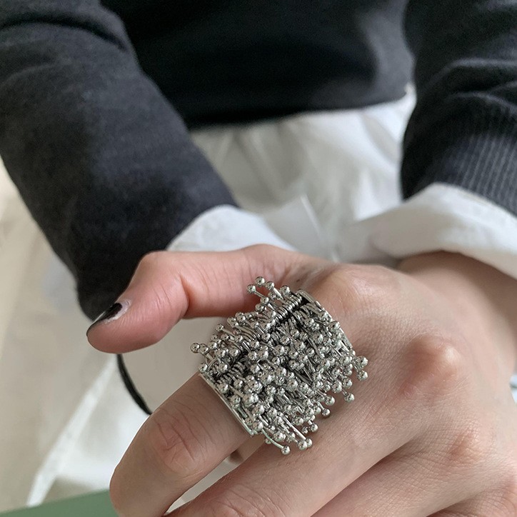 New Design Niche High-End Versatile Fireworks Seed Shape Open Ring Exaggerated European and American Retro Cross-Border Ring