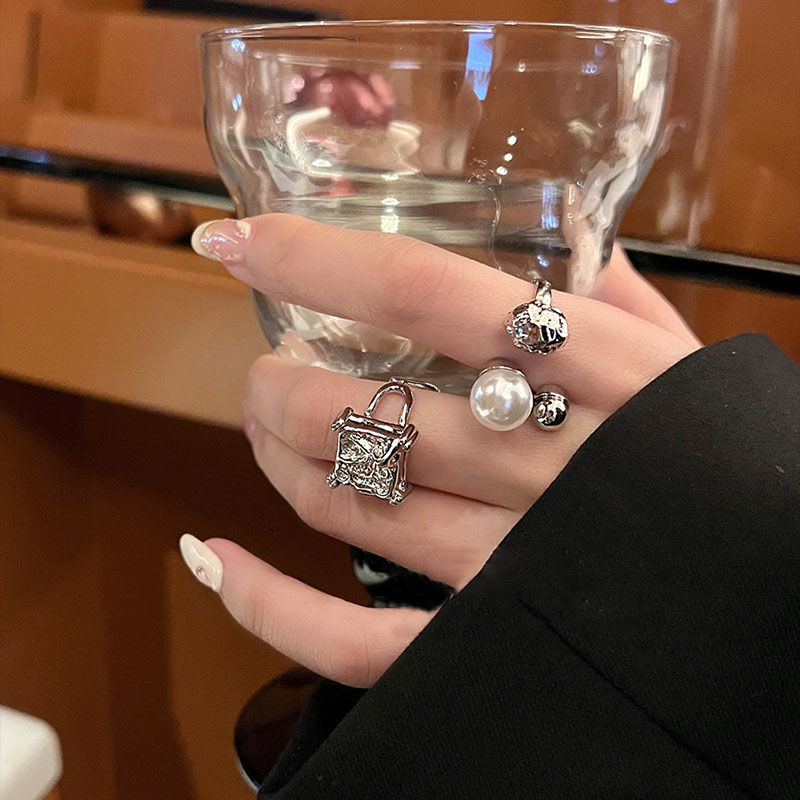 Lava texture square ring female ins student niche design cold style high-grade Pearl open ring