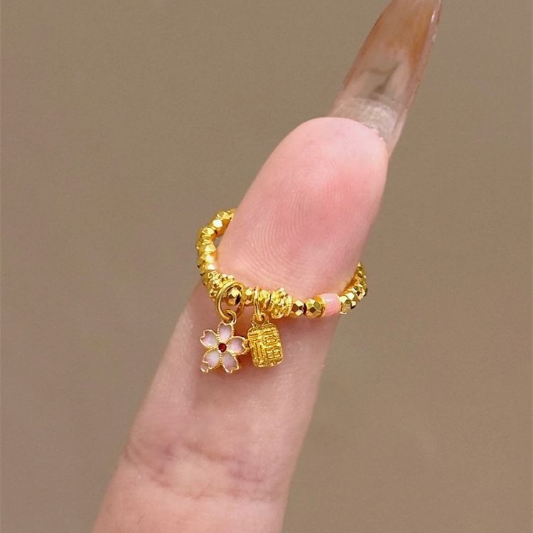 Fu Brand Cherry Blossom Ring for Women ins Niche Design Super Flashing Broken Gold Bouncy Bead Ring Personalized Index Finger Ring