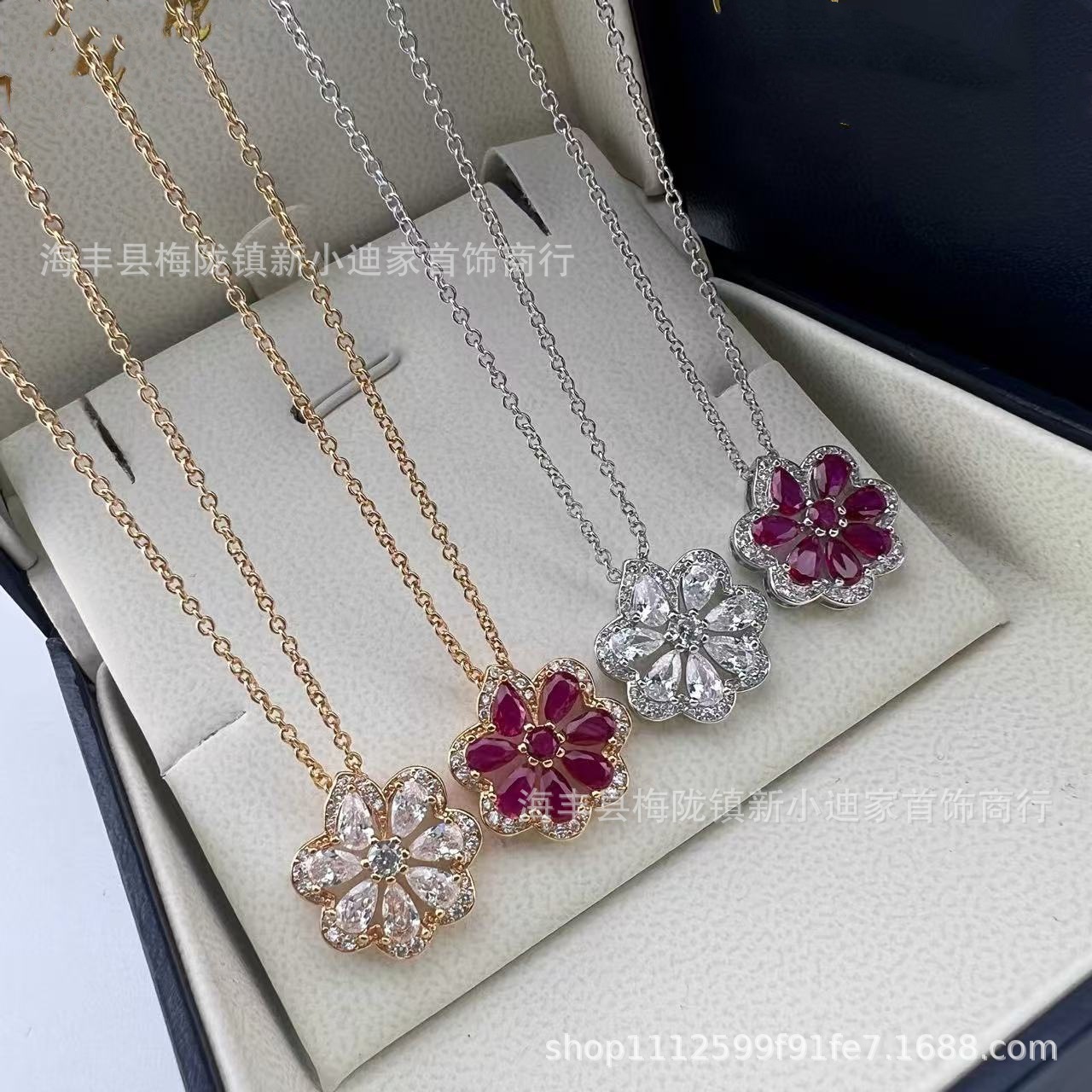 Chopard High Version V Gold Ruby Flower Necklace Women's Summer Versatile High-End Design Accessible Luxury Clavicle Chain