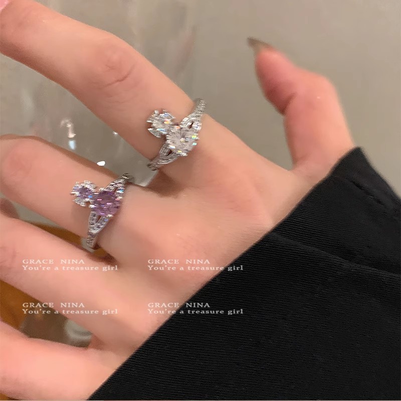 Super Flash Star Zircon Ring Women's Light Luxury High-end Sense Exquisite Fashion All-match Finger Ring Design Sense Ring Trendy