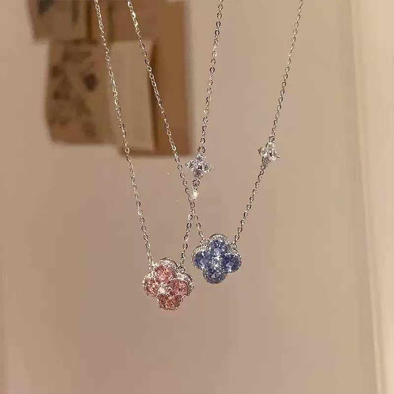 New Full Diamond Four-Leaf Clover Necklace for Women, Light Luxury, High-End Niche Design, Fashionable Temperament, Simple Flower Necklace