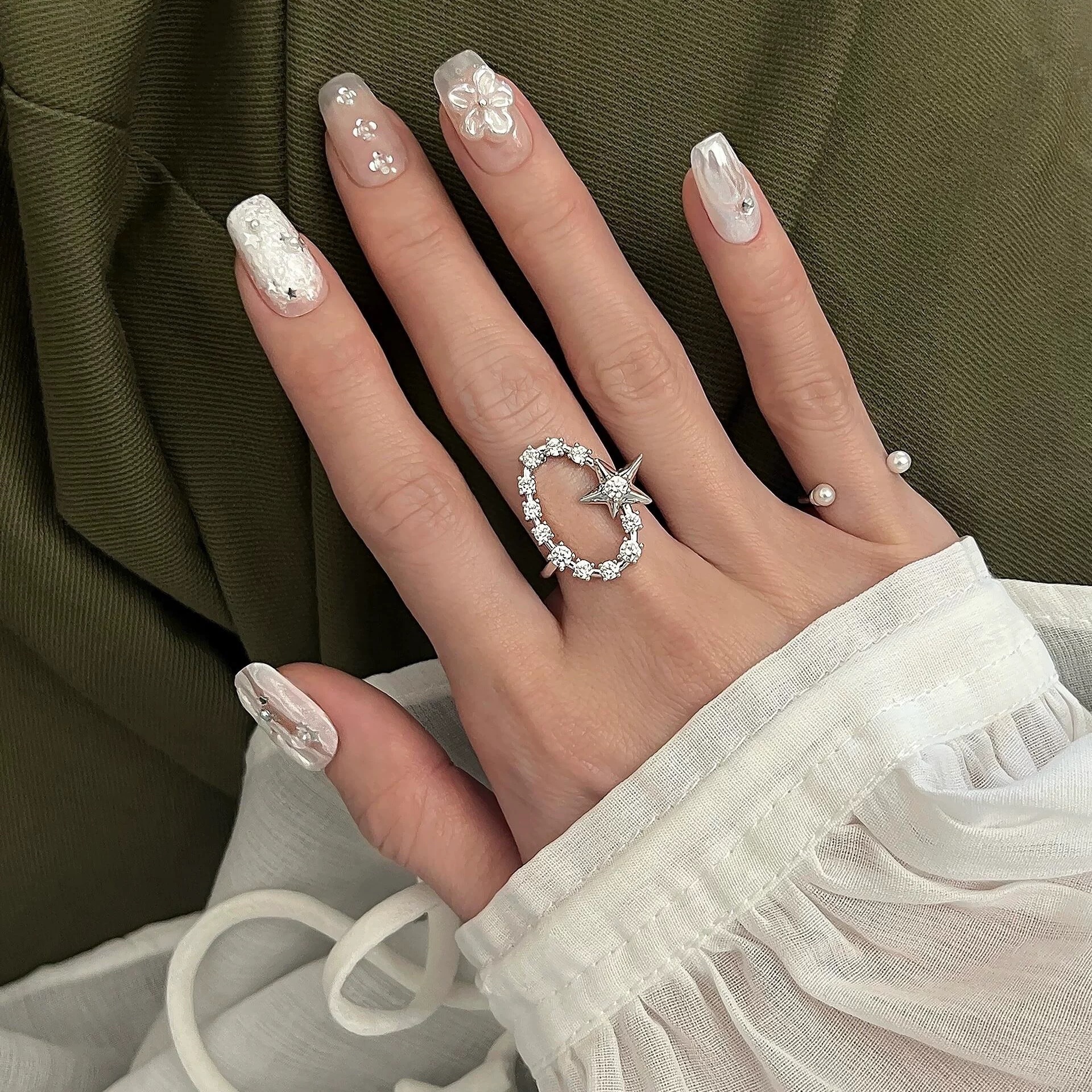 Cold Wind Zircon Star Opening Ring Korean Exquisite Fashion Design Sense Food Finger Ring Fashion All-match Bracelet for Women