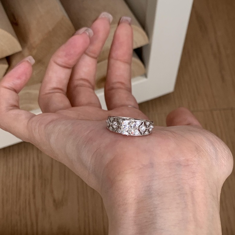 Middle Ancient Palace Style Light Luxury Niche Retro Hollow Pattern Square Diamond Ring with Zircon High Design Sense Ring