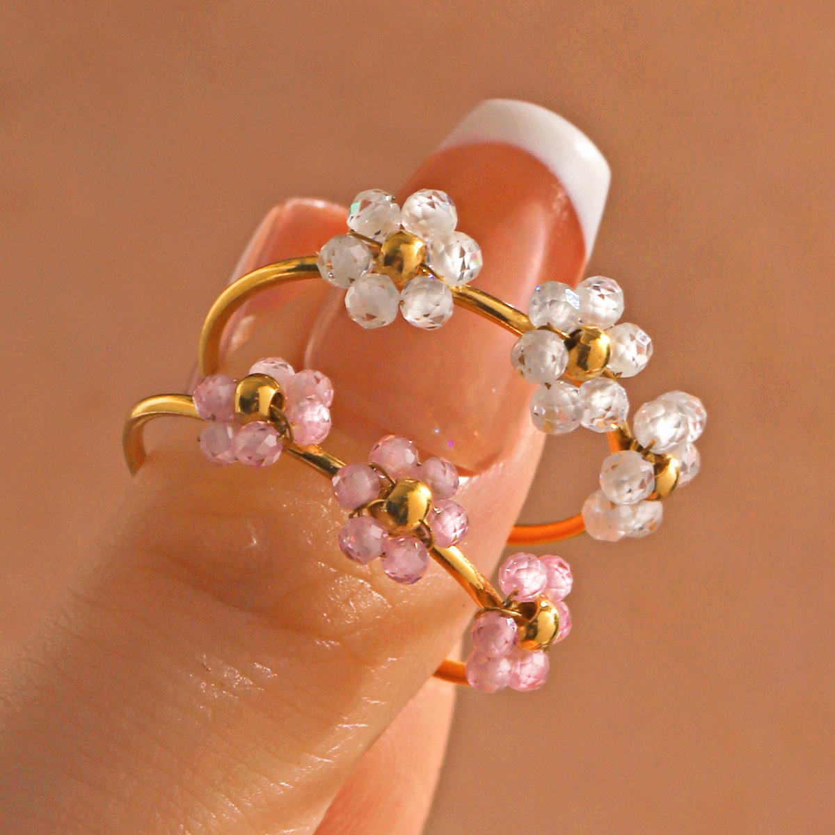 European and American Fashionable Stainless Steel Simple Style Zircon Flower Ring Women's Niche Design Popular Versatile Ring