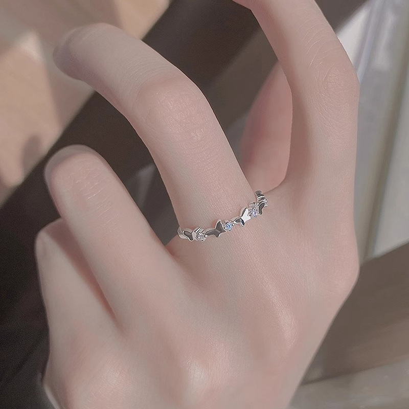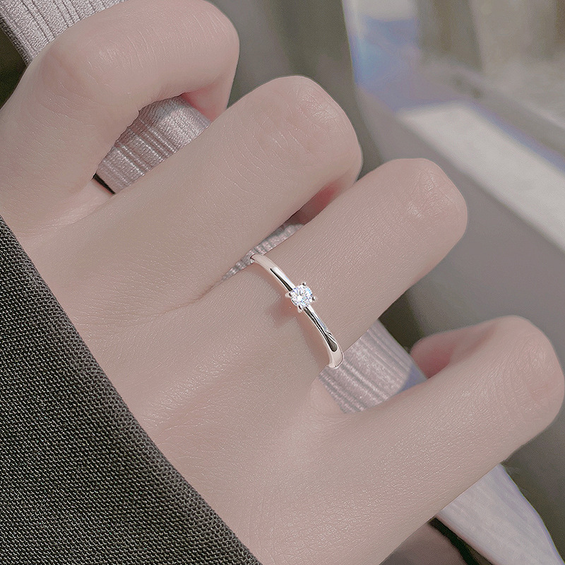 Fan Zhiqiao Korean-style Little Red Book Ins Simple S925 Sterling Silver White Crystal Ring Design Personality Ring