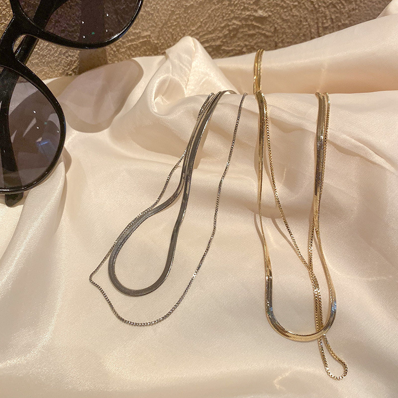 Double-layer Snake Bone Necklace Women's Summer Light Luxury Niche Design All-match Clavicle Chain Ins Hip-hop Retro Necklace Accessories