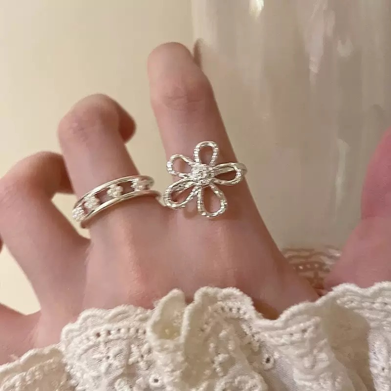 Minimalist Hollow Flower Alloy Ring for Women, Niche Design, Adjustable Open-Ended, Fashionable Versatile Stackable Index Finger Ring