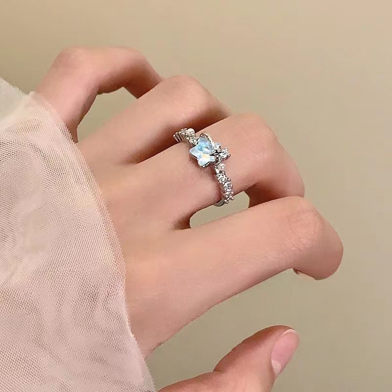 New Glacier Blue Star and Moon Ring 2026 New Niche Design Index Finger Ring Adjustable Ring for Women