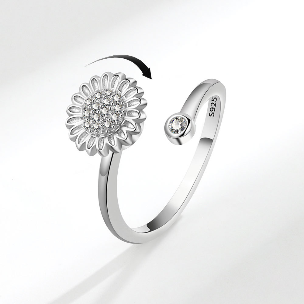 European and American Cross-border Explosions Ring Female Design Sense Niche Simple Jewelry Anti-anxiety Decompression Micro-inlaid Zircon Ring Female
