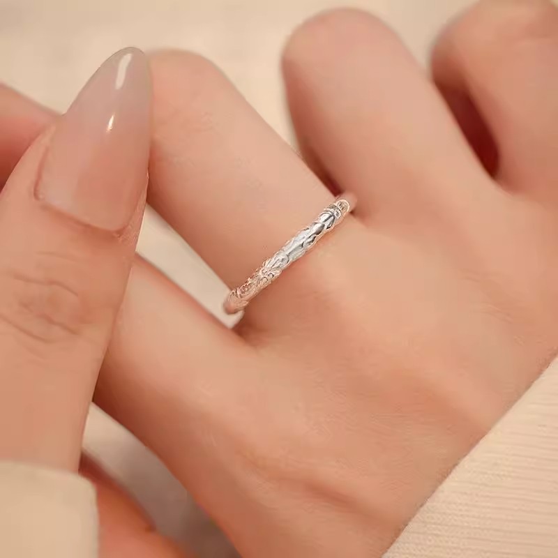 Ancient Style Plain Ring for Women, New Chinese Style Carved Design Ring, Sweet Cherry Blossom Index Finger Ring, Tail Ring 2025 New Style