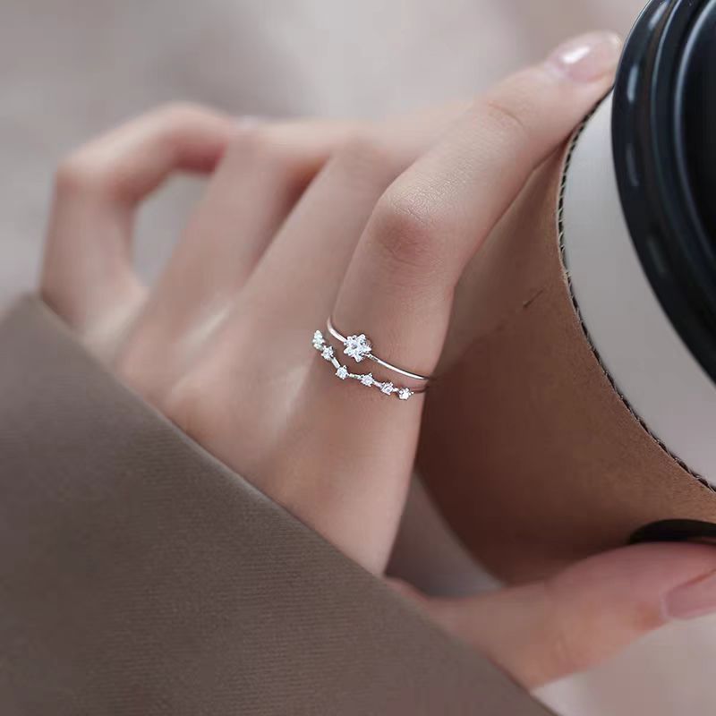 High-grade Zircon Ring Women's Light Luxury Niche Exquisite Design Sense Fashionable Personalized Open Index Finger Ins Trendy Internet Celebrity
