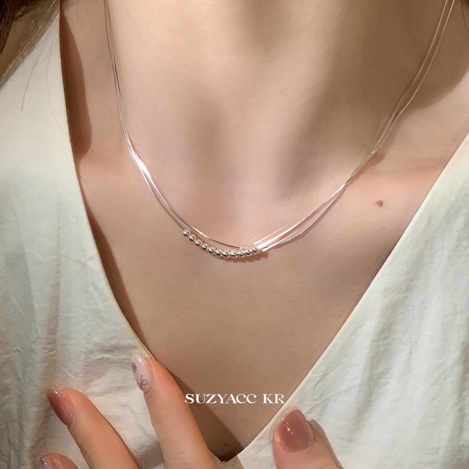 French Style Exquisite Simple Double Layer Silver Bead Necklace Women's Niche Light Luxury Overlapping Wearing All-match Design Sense Collarbone Chain Accessories