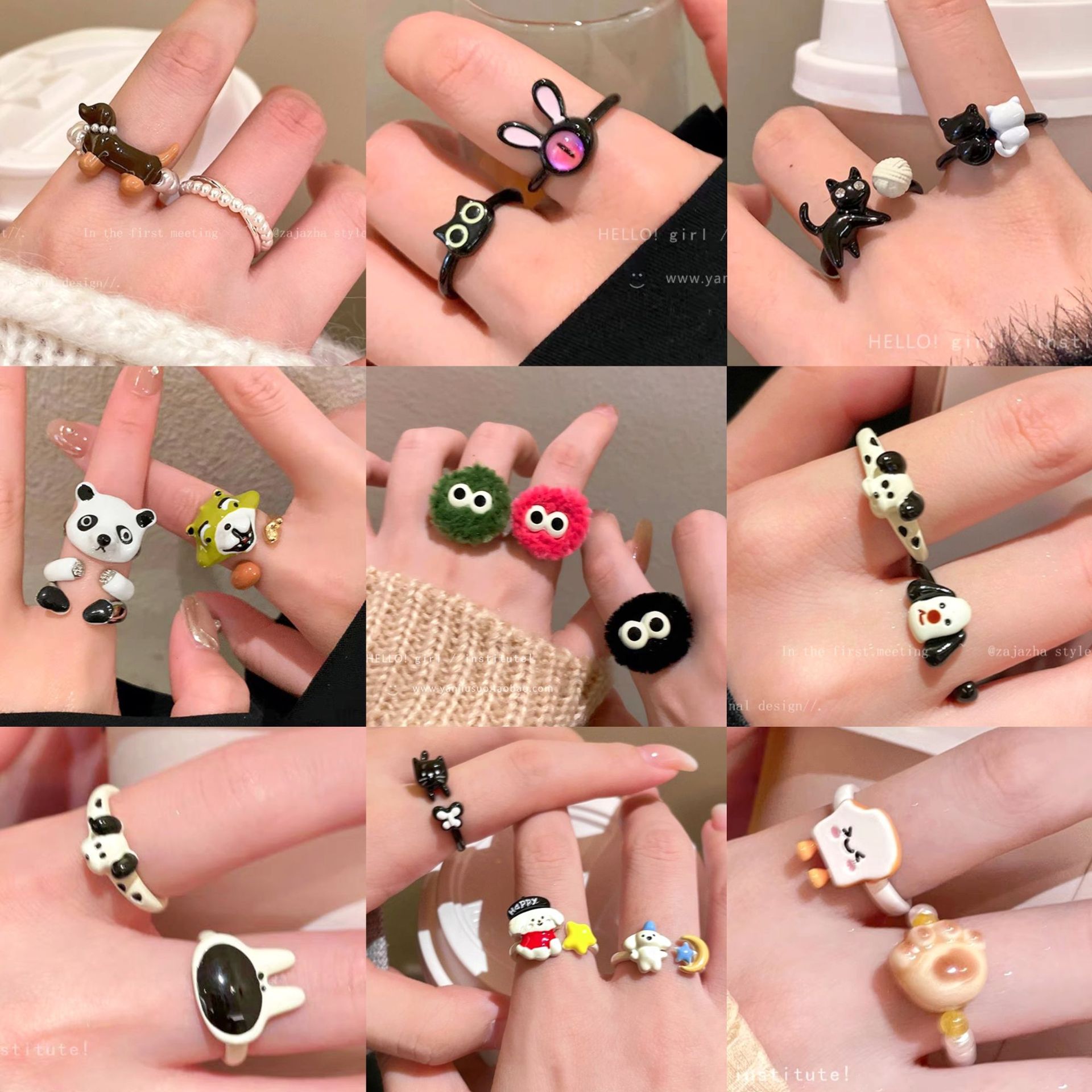 Autumn and Winter Childlike Cute Dachshund Bear Ring Female Niche Design Opening Adjustable Cartoon Index Finger Ring