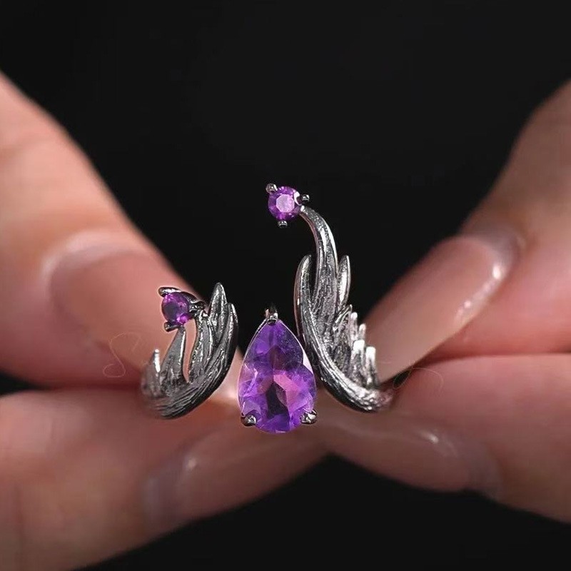 Niche Design Sense European and American Dark Retro Style Purple Diamond Open Ring Female Personality Neutral Cross-border Punk Ring