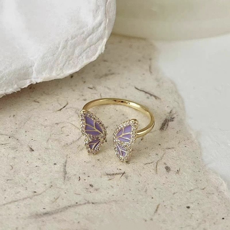 Pure Desire Purple Enamel Butterfly Ring for Women, Accessible Luxury Niche High-End Ring, Unique and Versatile Design Index Finger Ring
