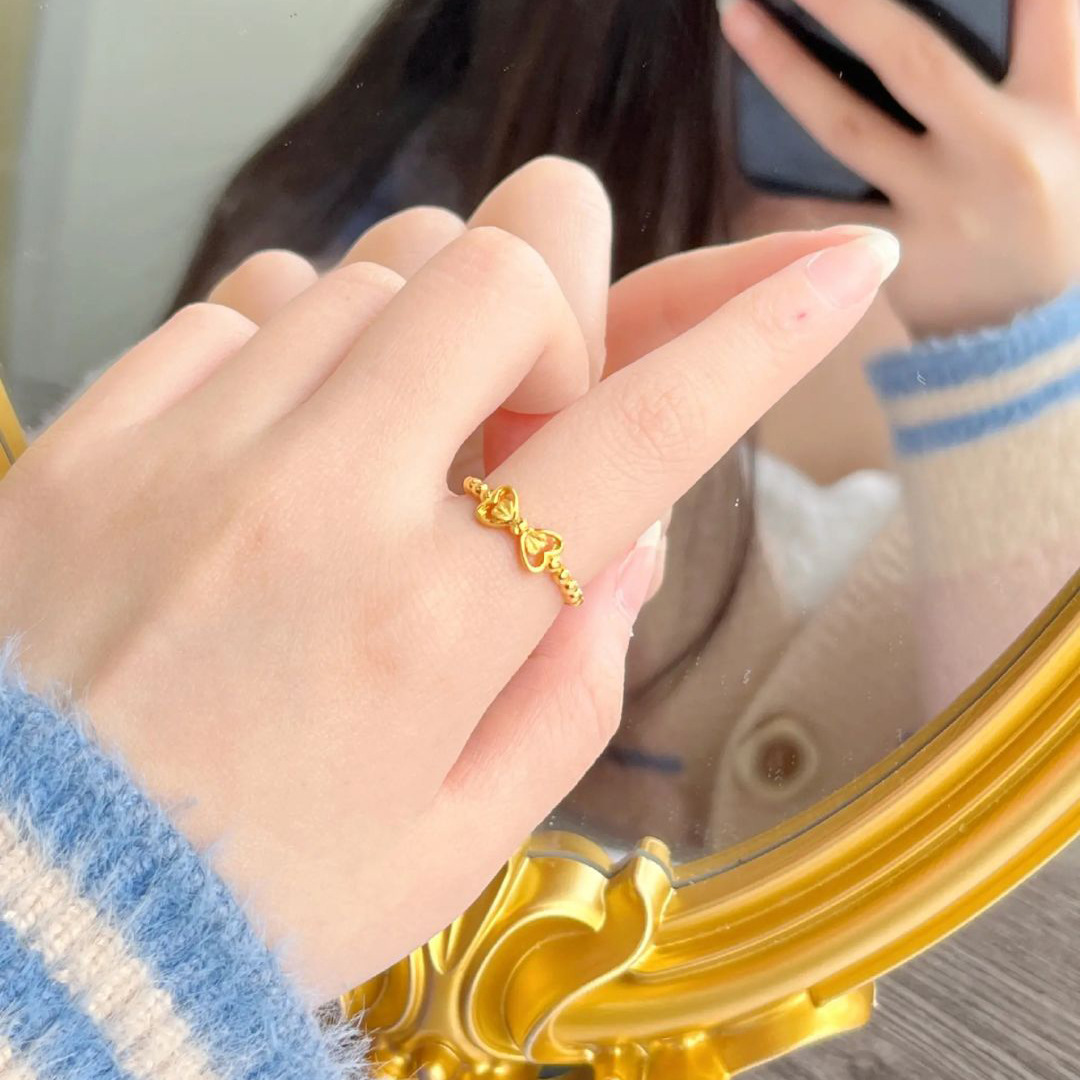 Bow Ring Women's New Niche Design Sense High Sense Finger Ring Retro Sweet Ring Opening Adjustable
