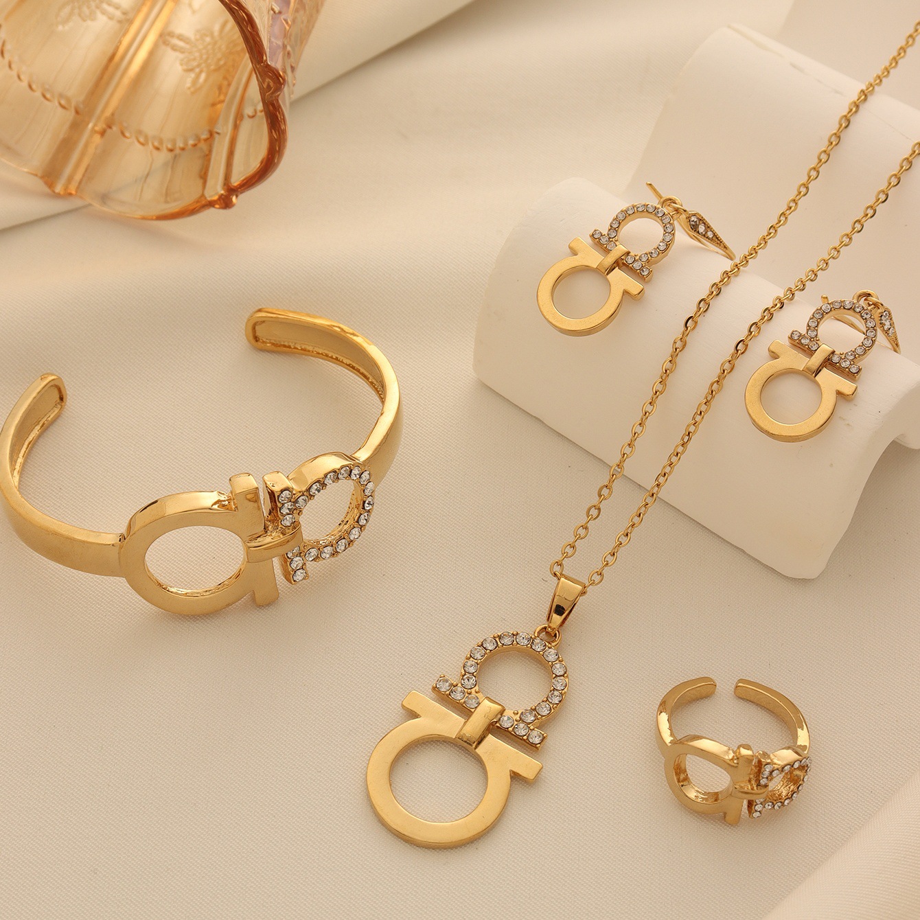 Dubai Fashion Cross-Border Popular Horseshoe Buckle High-End Jewelry Jewelry Set Versatile Design Open Bracelet Ring