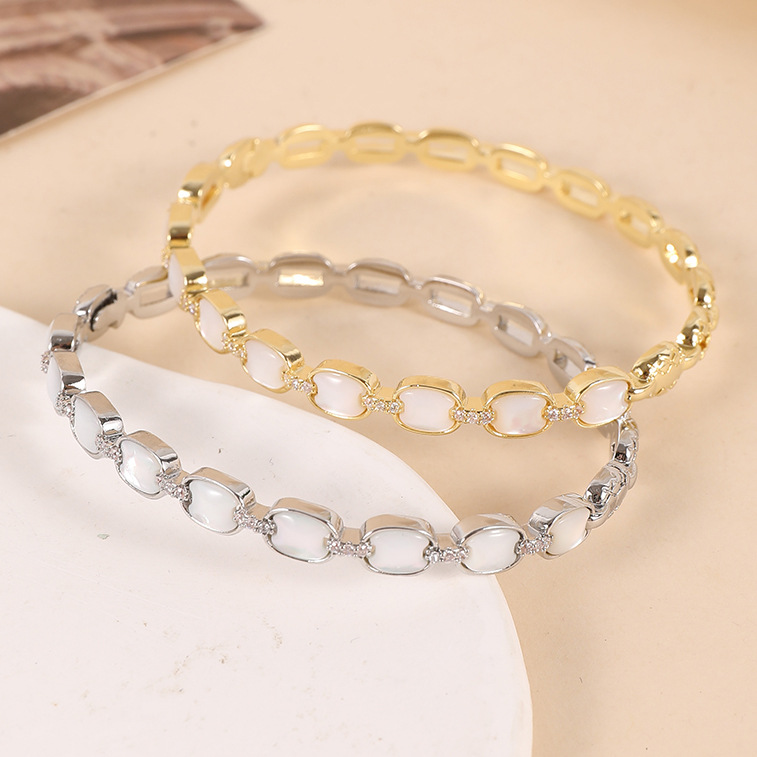 Crystal Clear Fat White Mother-Of-Pearl Bracelet Zircon Inlaid Natural Shell High-End Jewelry Middle East Dubai Jewelry