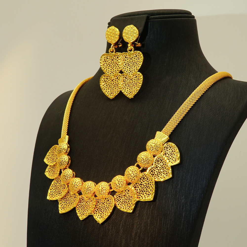 NOPEET Dubai gold 24k jewelry set African wedding jewelry Indian bride necklace earrings two piece set