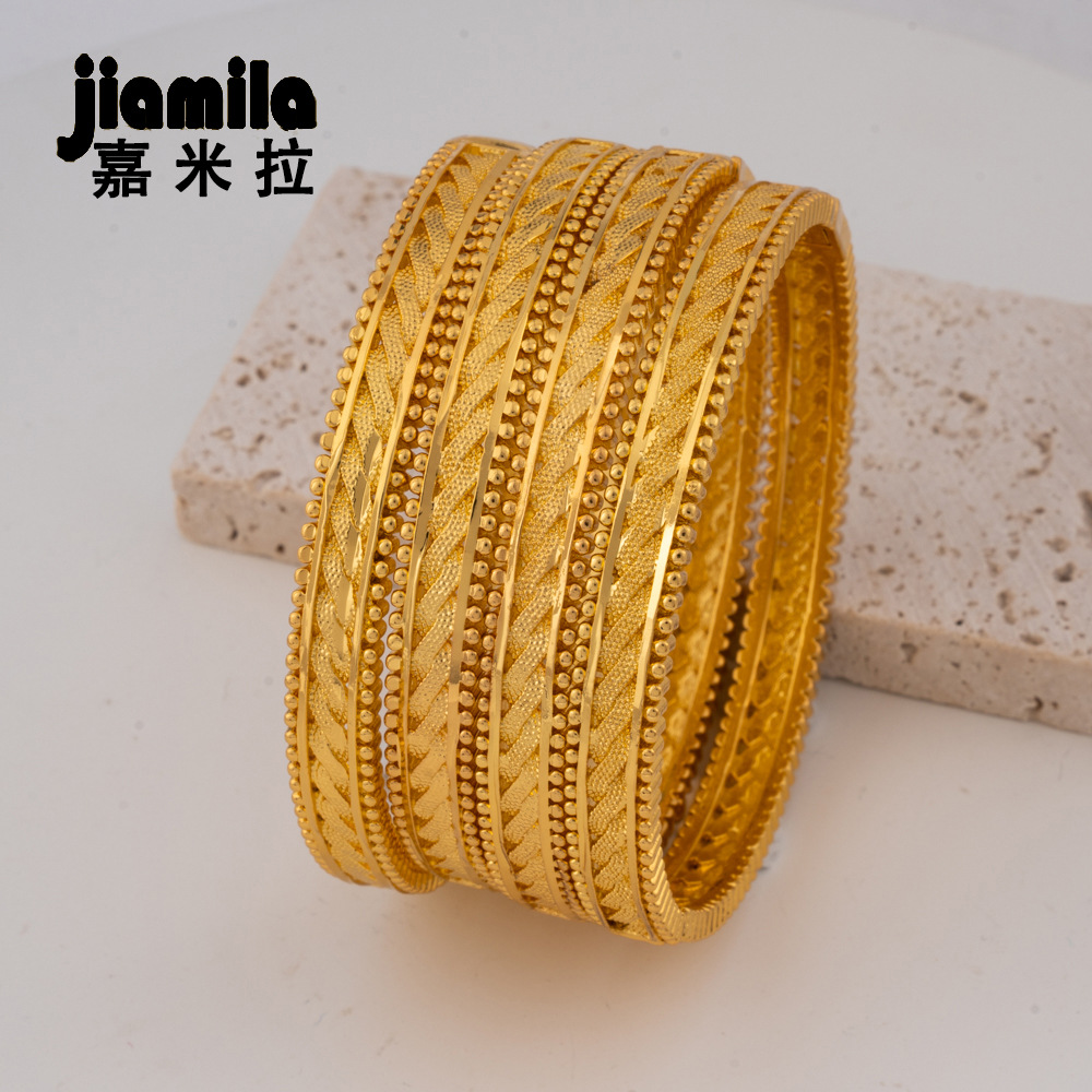 Cross Border Dubai 24K Gold Plated Fine Bracelet Indian Bride Wedding Jewelry Gold Bracelet Middle East Women's Bracelet Wholesale