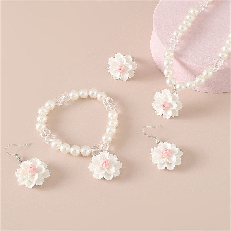 Four-piece cross-border hot earrings cute fresh necklace pearl flower pendant 2025 new children's earrings