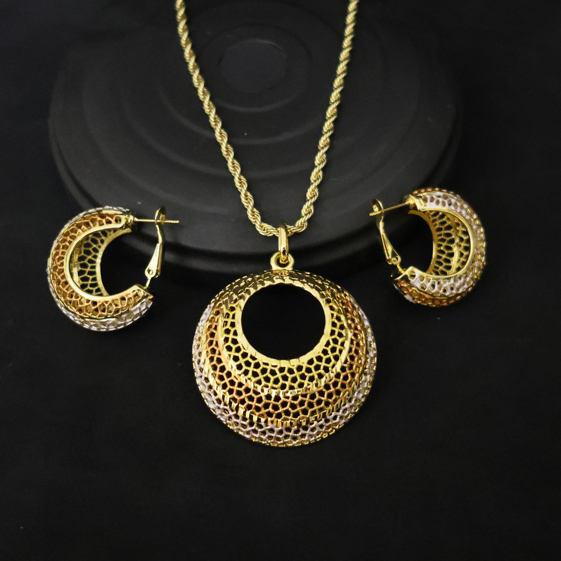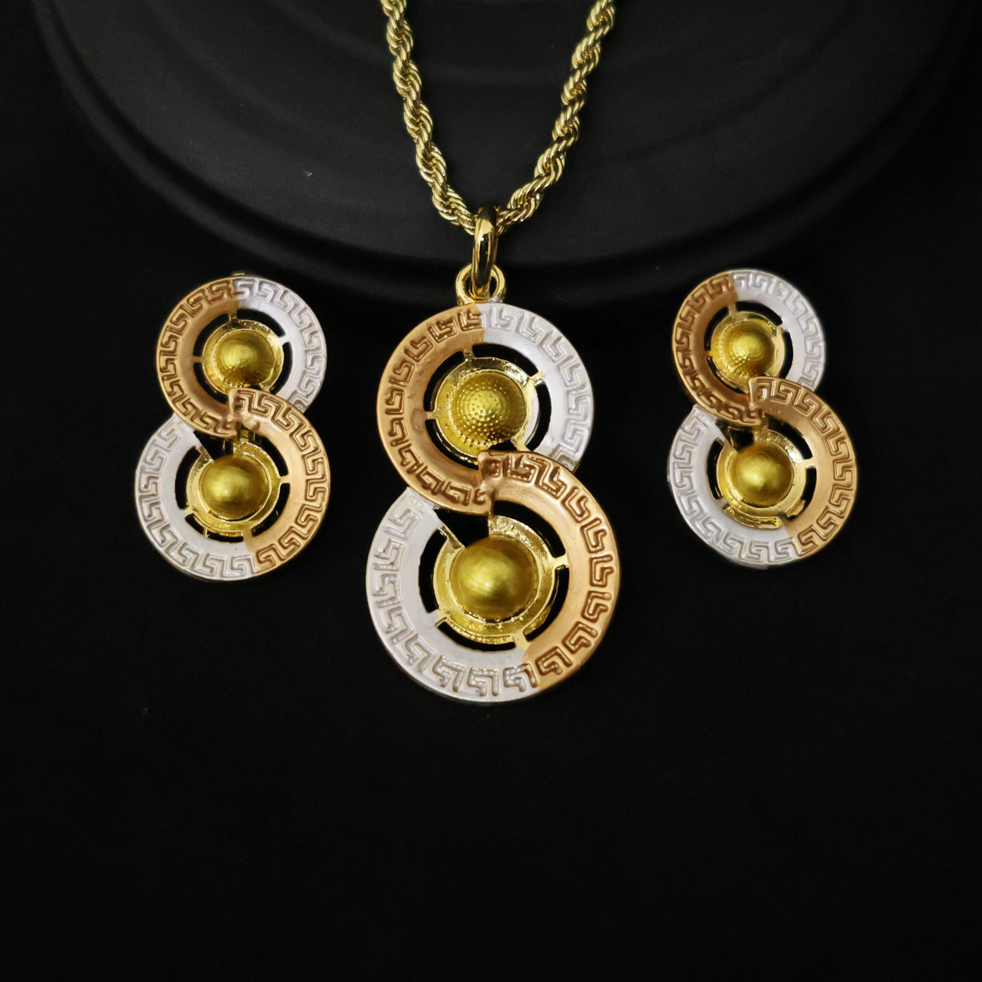 Dubai 24K Gold Pendant Necklace Earrings Set Cross-Border Nigerian Bridal Fashion Jewelry Wholesale Color Gold