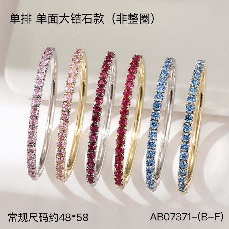 Cross-Border European and American Single-Row Large Round Diamond Color Zircon Bracelet, Simple and Elegant Commuting Versatile Dubai Gold-Plated Jewelry